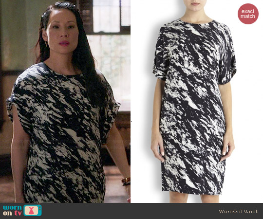 Wornontv Joan S Black And White Paint Printed T Shirt Dress On Elementary Lucy Liu Clothes And Wardrobe From Tv