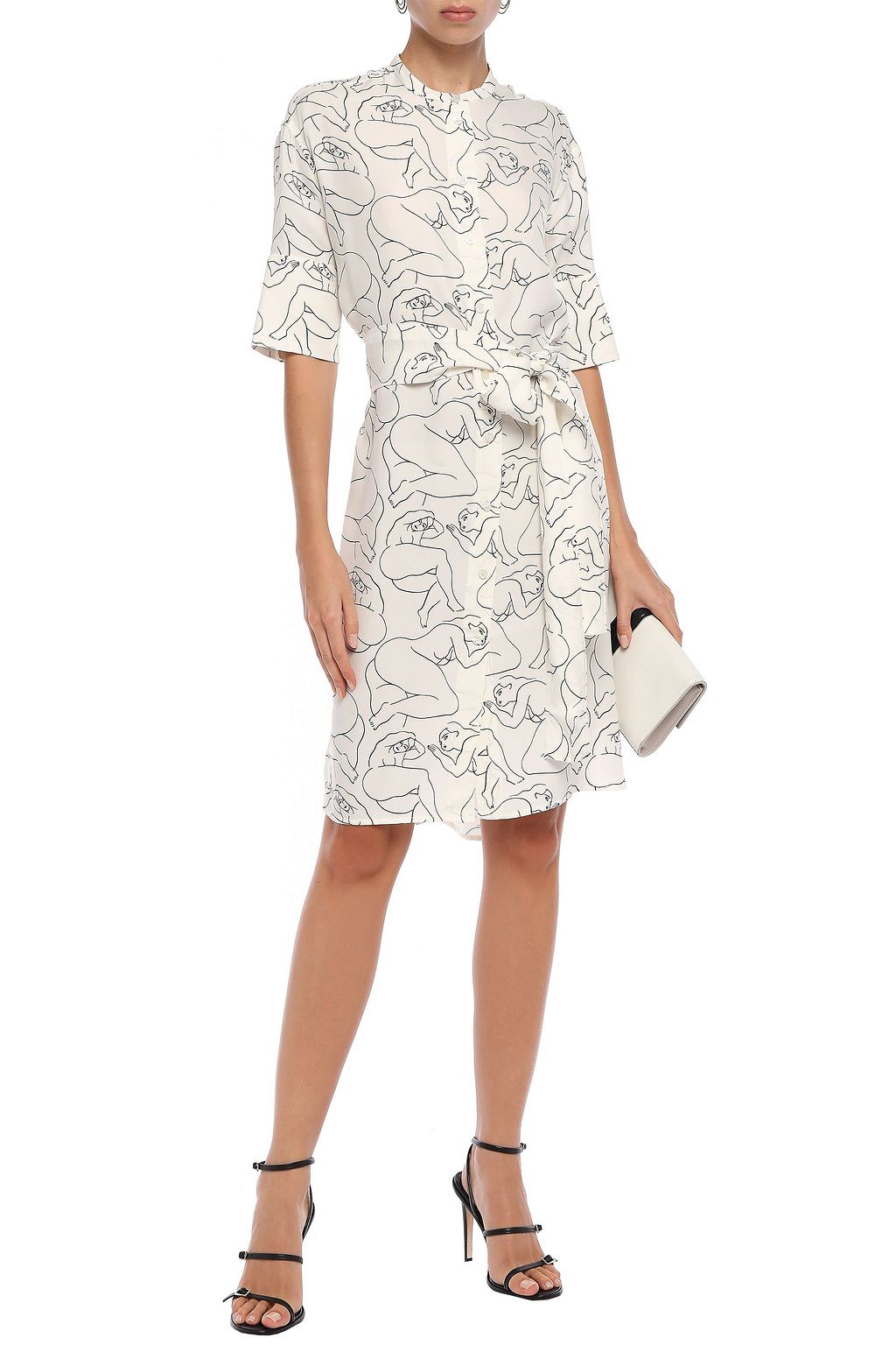 White Belted Printed Twill Shirt Dress Sale Up To 70 Off The Outnet By Malene Birger The Outnet
