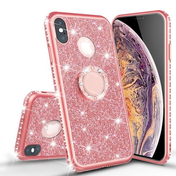Apple Iphone 8 Case Iphone 7 Case Glitter Cute Phone Case Girls Kickstand Bling Diamond Rhinestone Bumper Ring Stand Sparkly Iphone 7 8 Rose Gold Stripe Walmart Com Walmart Com