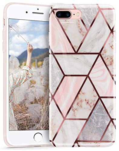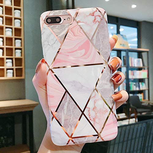 Lchullelchulle Marble Case For Iphone 7 Plus Iphone 8 Plus Case Geometric Marble Design Stylish Shiny Rose Gold Stripes Glossy Slim Case Soft Tpu Rubber Shockproof Cover For Girls Women Pink
