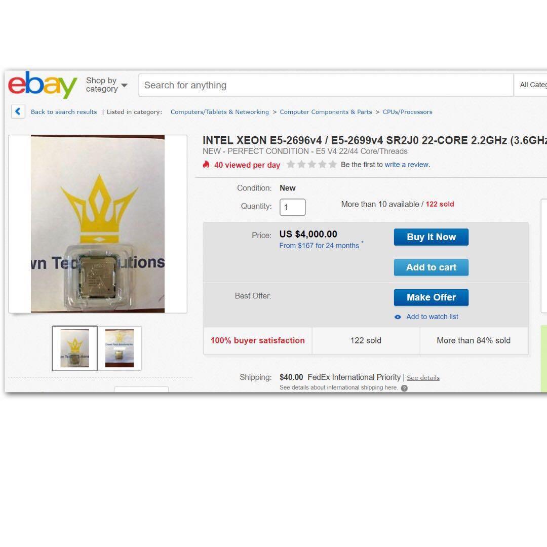 Ebay Listing Of 18 Core Xeon E5 2600 V4 Broadwell Ep Es Processor Spotted Selling For 999 Us Compatible With X99 Motherboards