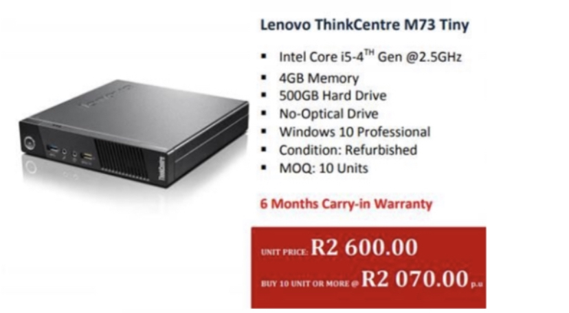Lenovo Thinkcentre M73 Refurb Tiny Desktop Pc I3 4gb Ram 3gb Hdd Win 10 Pro 10ax507p0j Tech Co Za