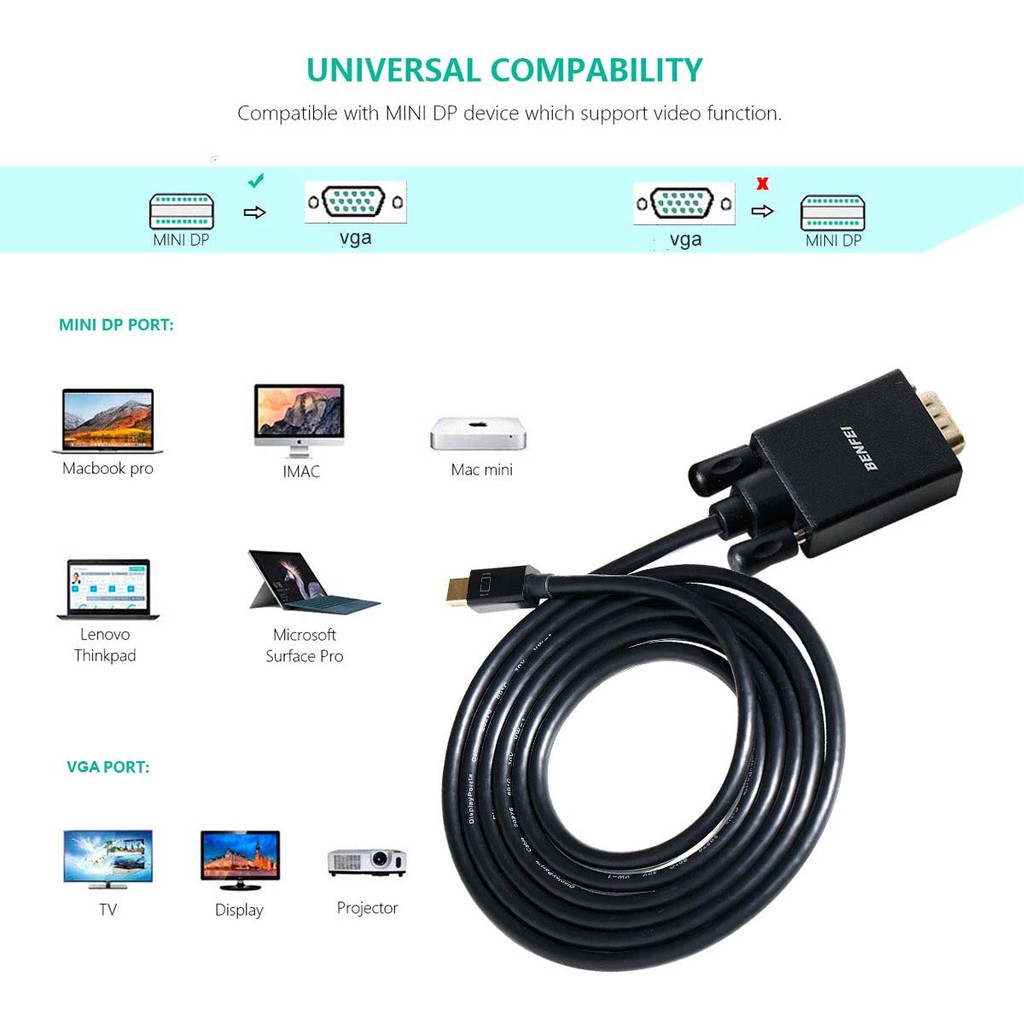 Qoo10 Mini Displayport Minidp Thunderbolt To Svga Vga Cable For Microsoft Su Mobile Accessori