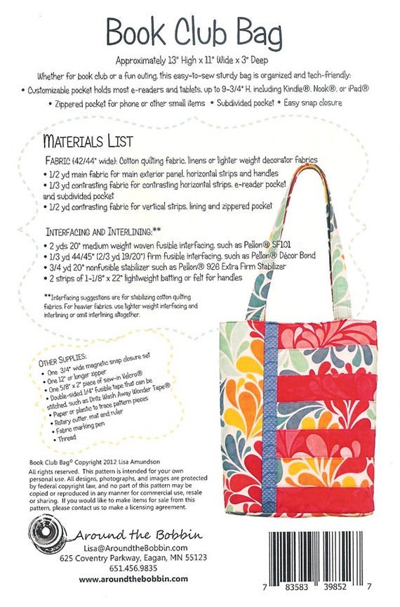 Book Club Bag Pattern By Around The Bobbin Etsy