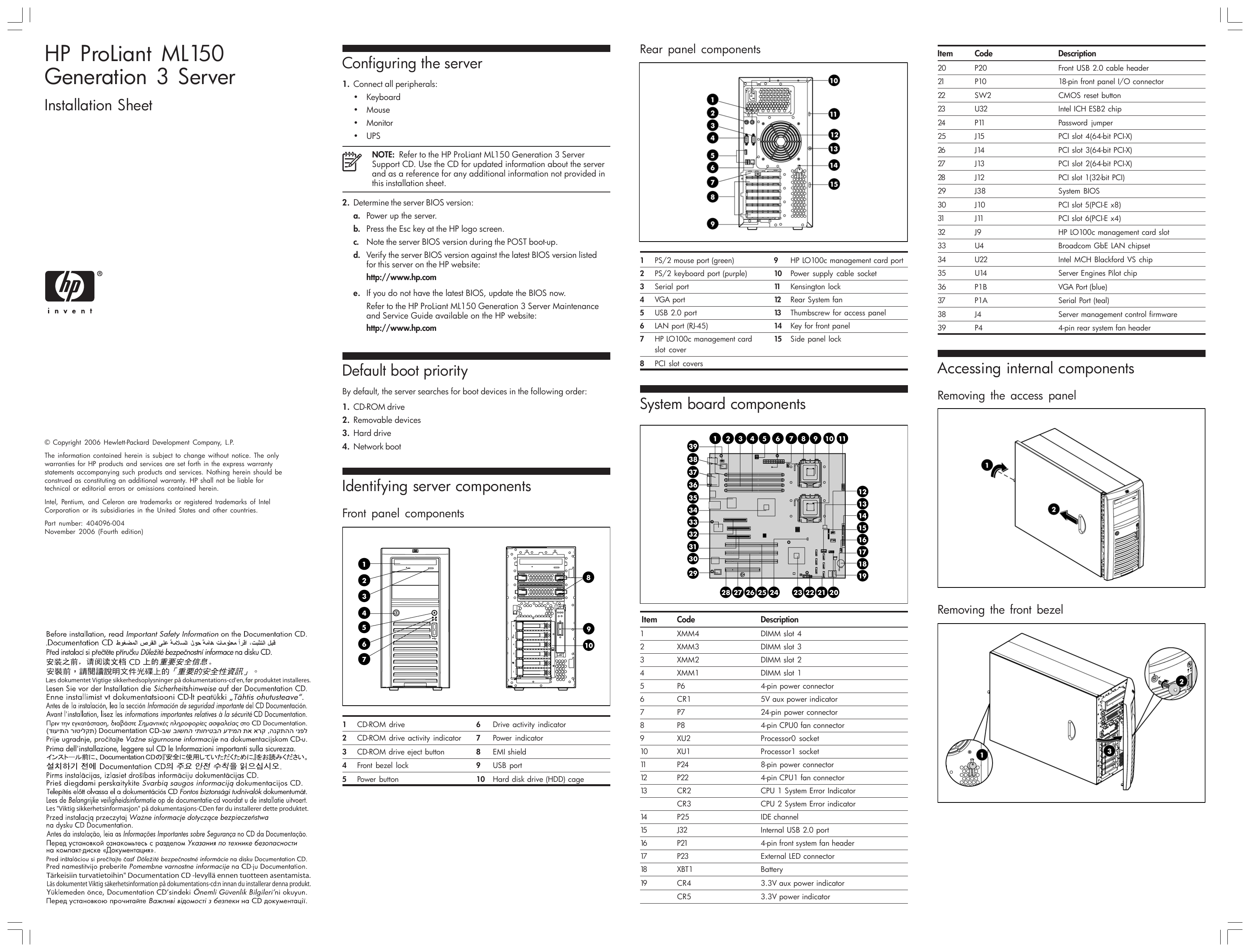 Hp Proliant Ml150 Generation 3 Server Installation Sheet Manualzz