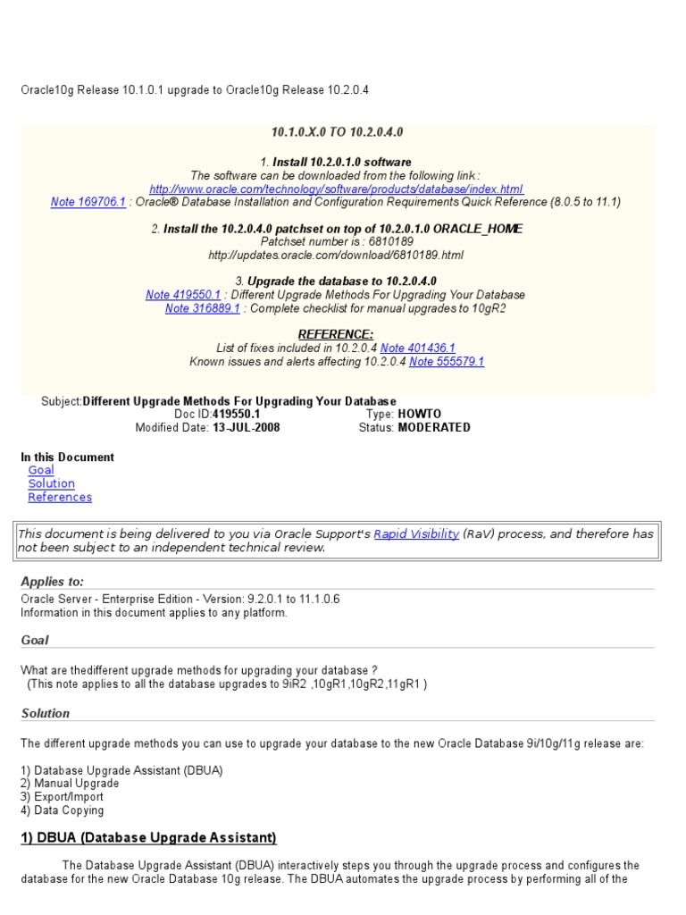 Oracle10g Release 1 Upgrade To 10 2 0 4 Oracle Database Databases