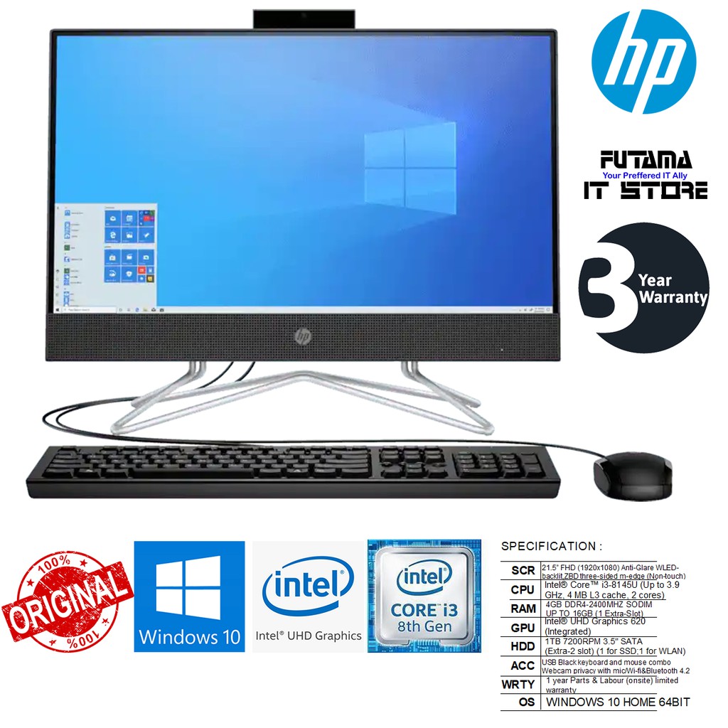 Hp All In One 22 Dd0101d Jet Black I3 8145u 4gb 1tb 21 5 Fhd W10 1yrs Shopee Singapore