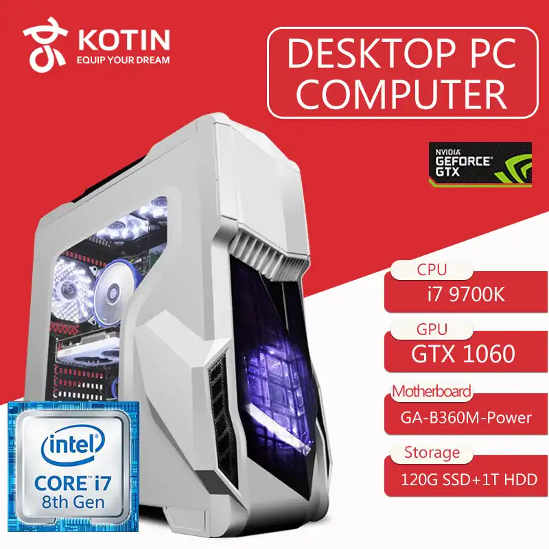Kotin Z2 Gaming Pc Intel I7 9700k Gtx1060 6gb Gpu 1gb Ssd 1tb Hdd Gaming Desktop Asus 60m 8gb Ram Computer Pubg 4 Fans Desktops Aliexpress