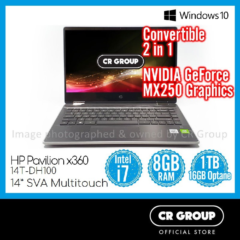 Hp Pavilion X360 2 In 1 Convertible 14t Dh100 I7 u 8gb Ram 1tb 16gb Optane Memory Nvidia Geforce Mx250 Shopee Singapore