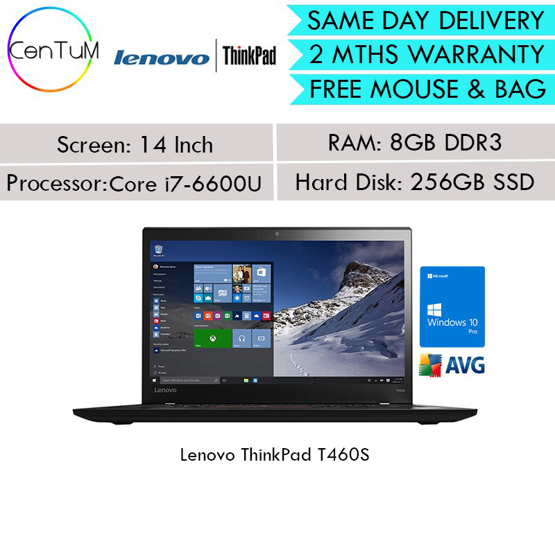 Same Day Delivery Refurbished Lenovo Thinkpad T460s 14 Inch Core I7 6600u 8gb 256ssd Win10 Up To 24 Months Warranty Lazada Singapore
