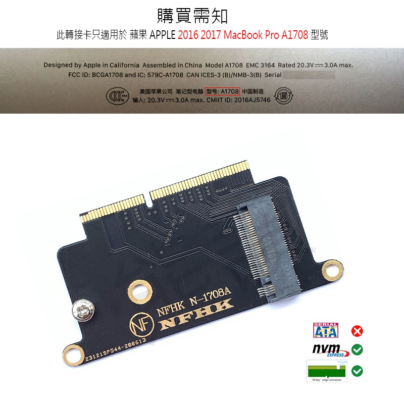 24h 17 For Macbook Pro A 1708 Nvme M 2 Pcie Ssd Adapter Card Shopee Malaysia