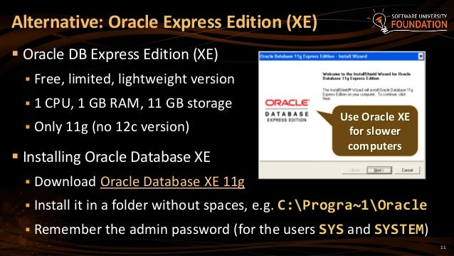 Installing Oracle Database 11g Xe On Windows Xp 32 Bit Oracle Database Xe 11gr2 Jump Start Guide