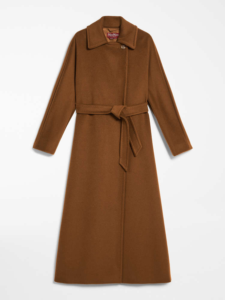 Max Mara Studio Double Breasted Wool Long Coat With Belt Collage Woman Camel Mascheroni Moda
