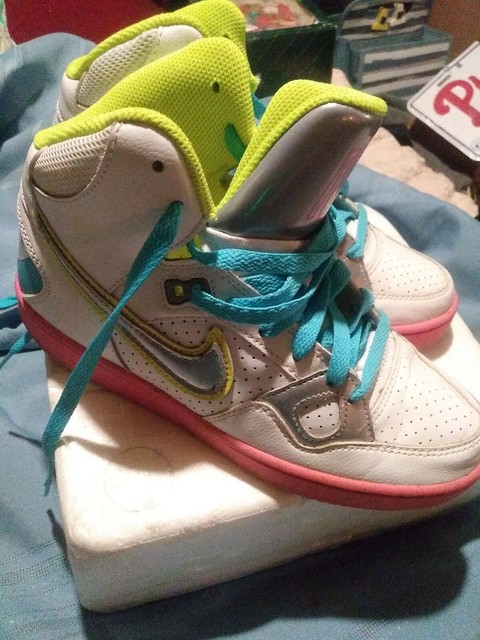 13 Nike Son Of Force Mid Size 7 White Metallic Silver Pink Glow 100 For Sale Online Ebay