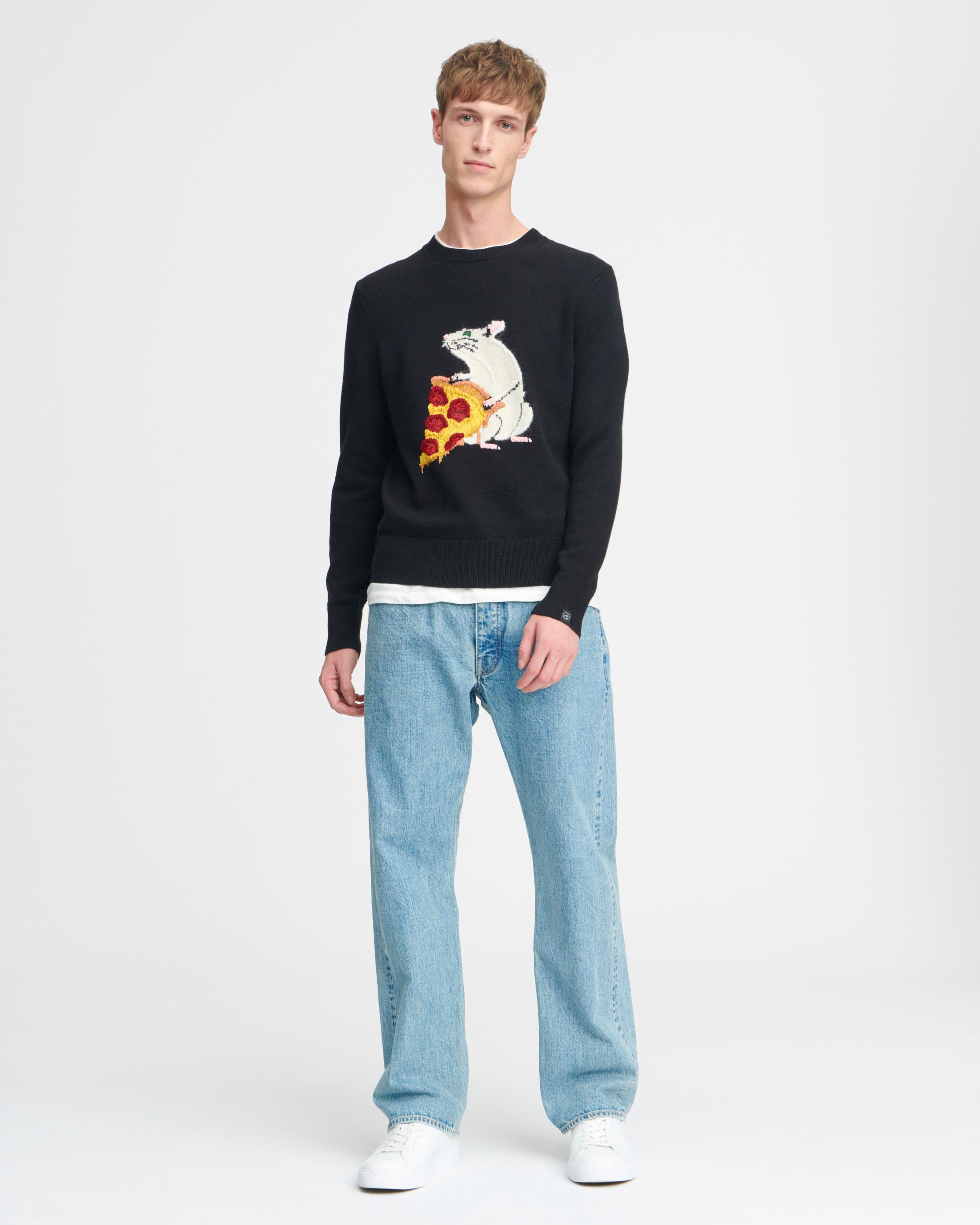 Pizza Rat Men S Black Crewneck Sweater Rag Bone