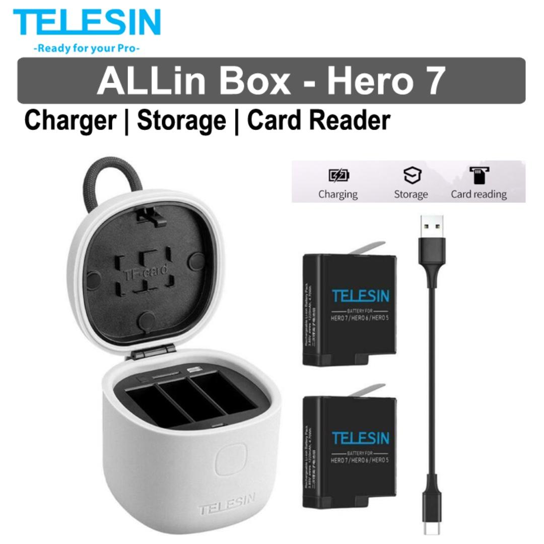 Telesin Allin Box Gopro Hero 7 Battery Charger Sd Card Reader Storage Photography Camera Accessories Others On Carousell