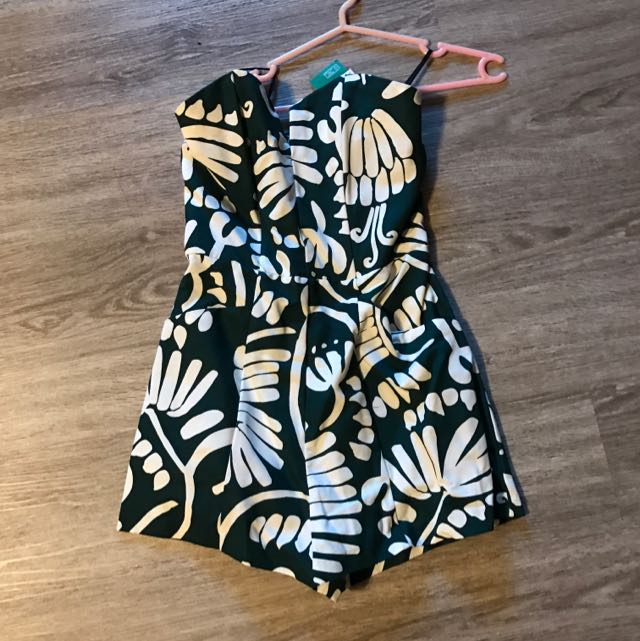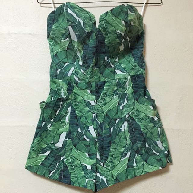Bnwt H M Conscious Tube Leafy Romper In Green Women S Fashion Clothes On Carousell