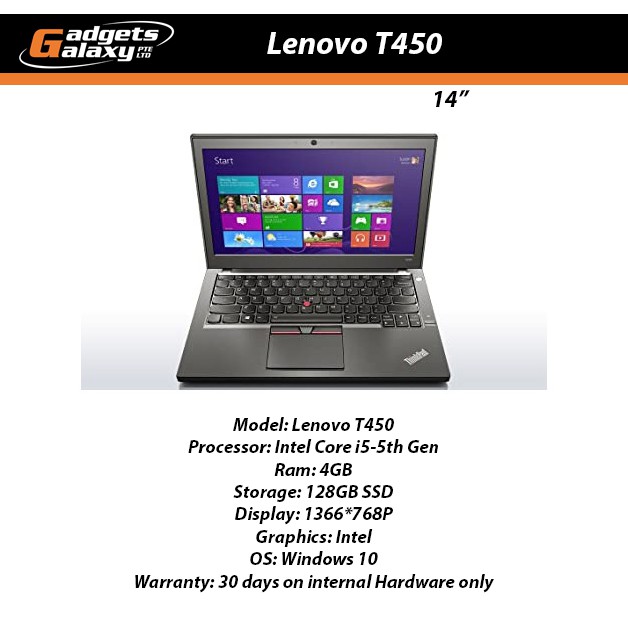 Lenovo Thinkpad T450 I5 5 4gb 128gb Ssd Refurbished Laptop Shopee Singapore