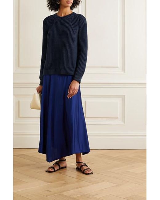 By Malene Birger Mea Ribbed Cotton Blend Sweater In Navy Blue Lyst