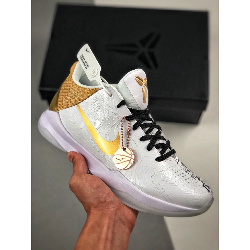 Nike Zoom Kobe 5 Protro Big Stage White Metallic Gold Black Ct8014 100 With Sneaker