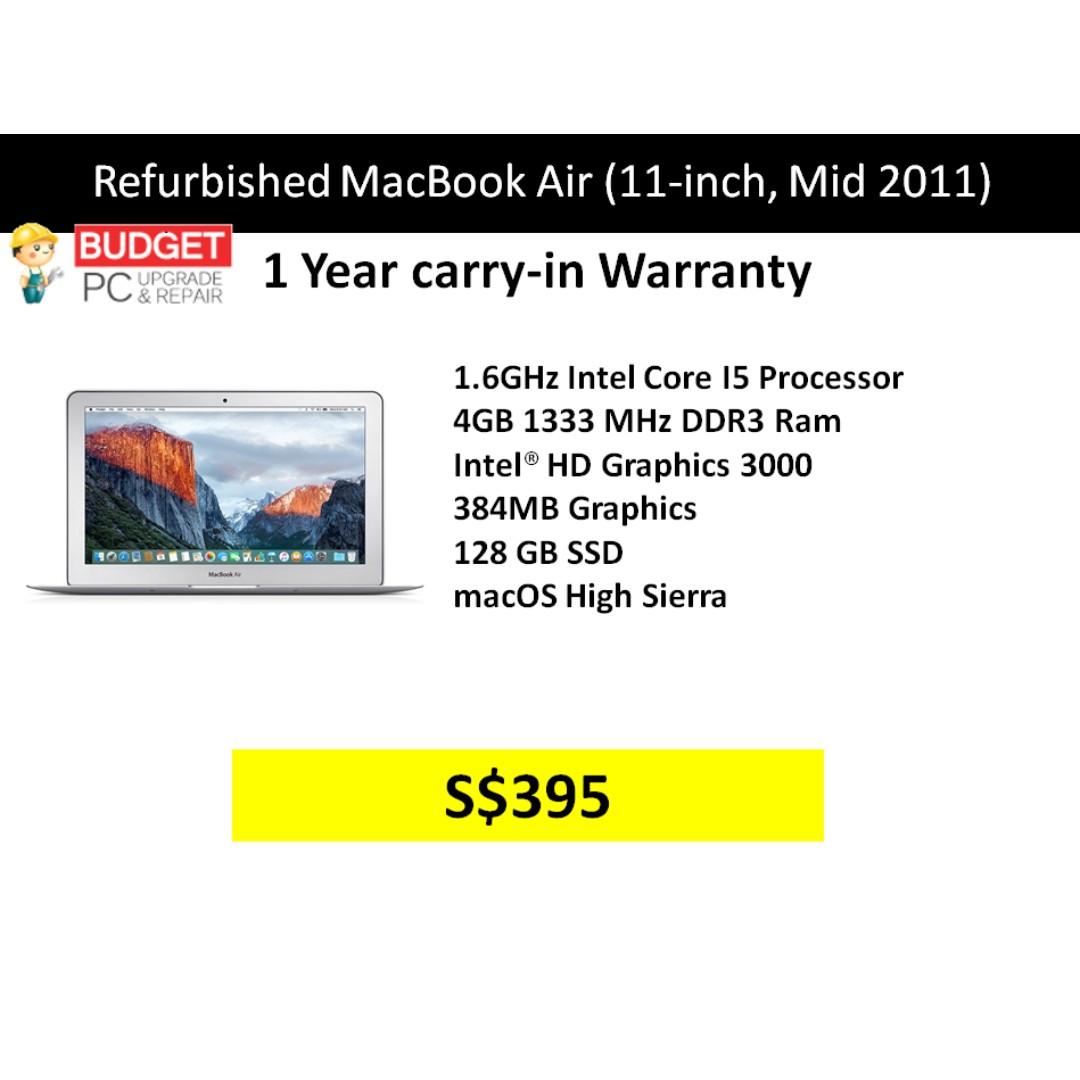 Refurbished Macbook Air 11 Inch Mid 11 A1370 Emc2471 4gb Ram 128gb Ssd 1 Year Carry In Warranty Electronics Computers Laptops On Carousell