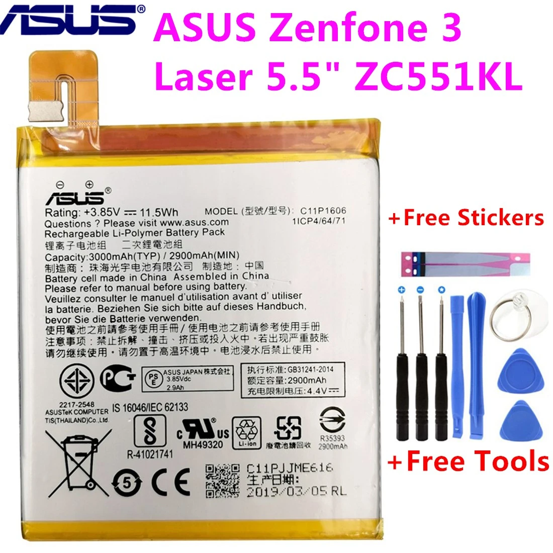 Original Asus C11p1606 Zenfone 3 Laser Battery For Asus Zenfone 3 Laser 5 5 Zc551kl With Tool 3000mah Mobile Phone Batteries Aliexpress