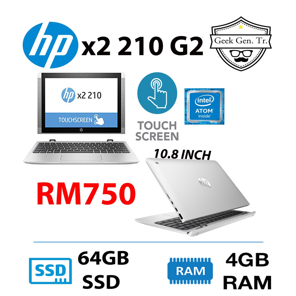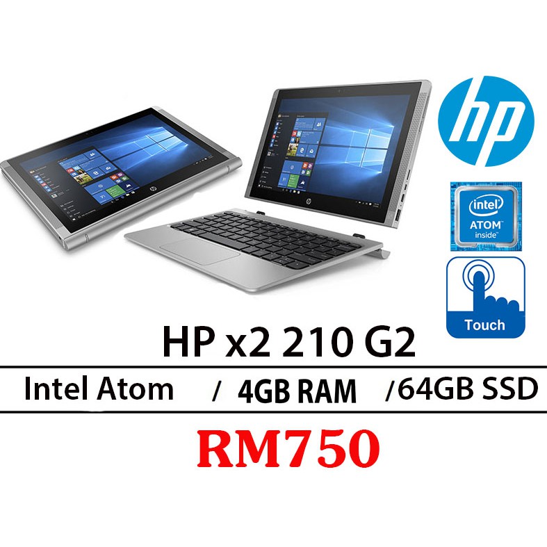 Hp X2 210 G2 Detachable Touchscreen Intel Atom X5 Z50 4gb Ram 64gb Ssd 10 8 Inch Shopee Malaysia