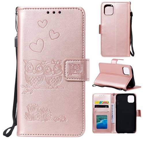 Embossing Owl Couple Flower Leather Wallet Case For Iphone 11 Pro Max 6 5 Inch Rose Gold Iphone 11 Pro Max 6 5 Inch Cases Guuds