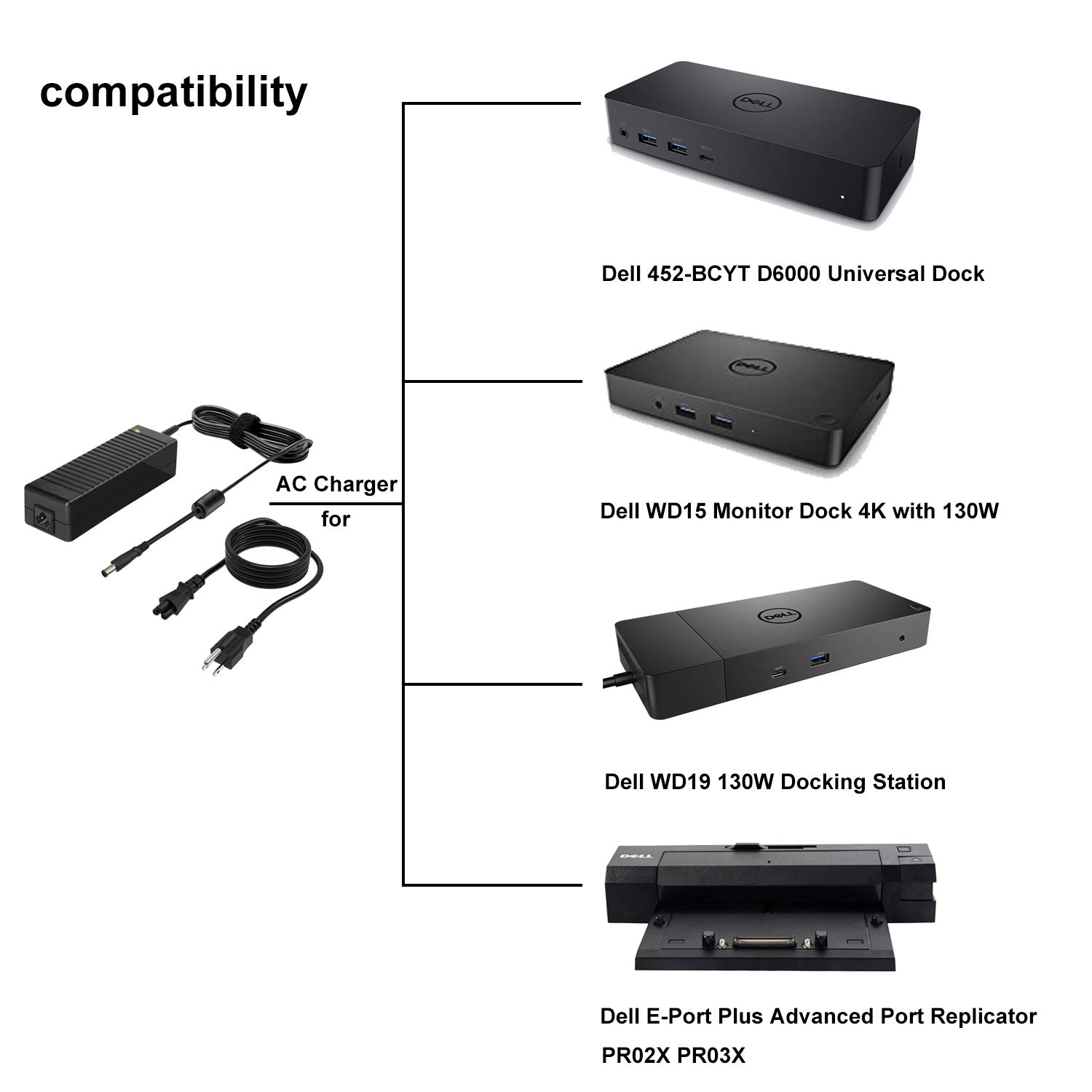 Superer 130w 19 5v 6 7a Ac Charger For Dell Universal Dock D6000 452 yt Monitor Dock Wd15 6gfrt 450 Afgm Wd19 Ka 5h8cr 210 Ario E Port Plus Advanced Port Replicator Pr02x Pr03x Power Supply Cord Amazon Sg Electronics