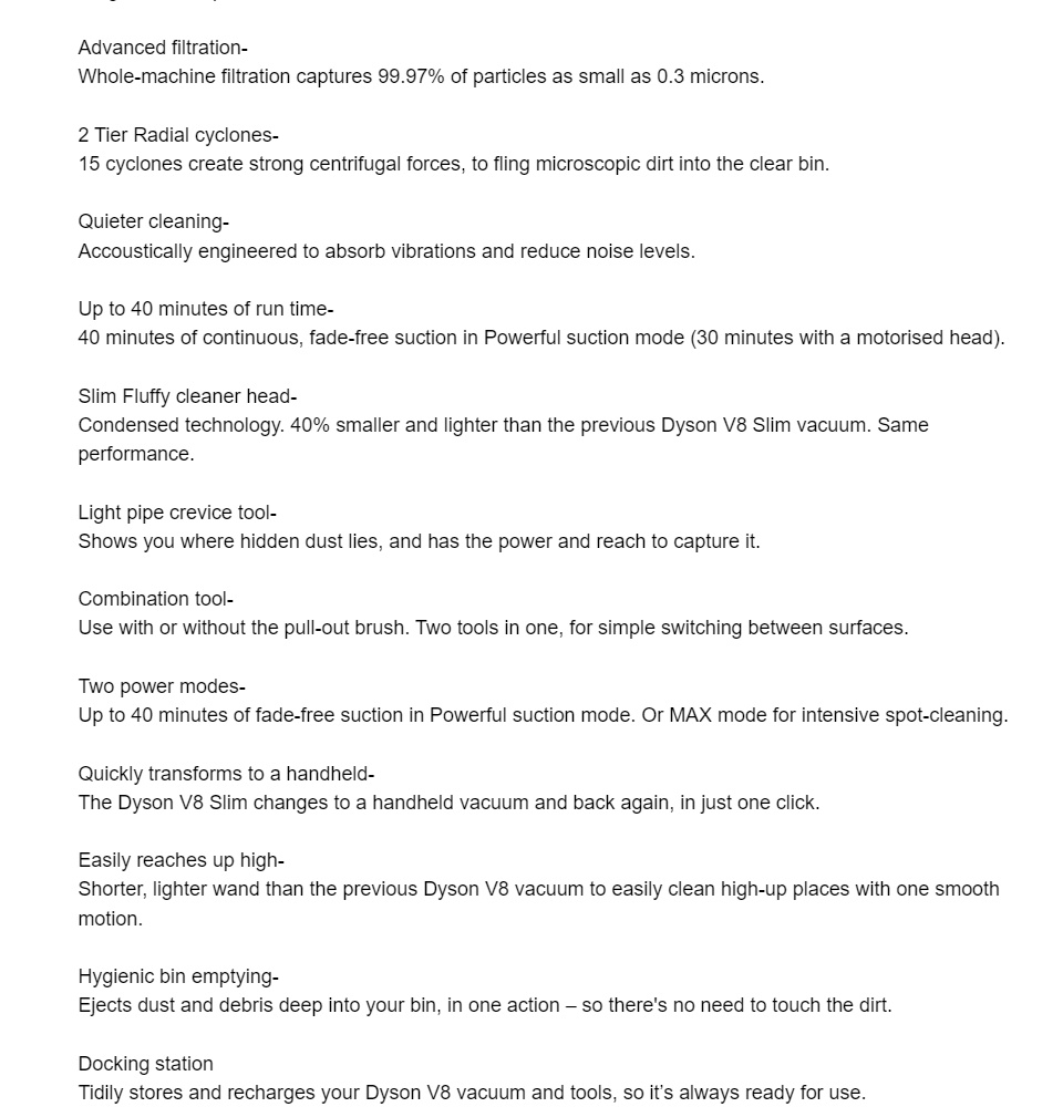 Dyson V8 Slim Fluffy Cordless Vacuum Cleaner Courts